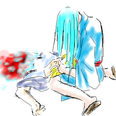 過去編の一場面を描いてみた。貴之(青水)と柊