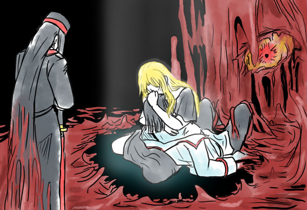 インフェルノによって街が沈んだ時に巻き込まれたけど自分で腕切断して逃れたサンドラの絵